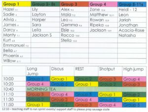 Provided the weather allows, athletics of Friday will run to the timetable below starting at 10am.